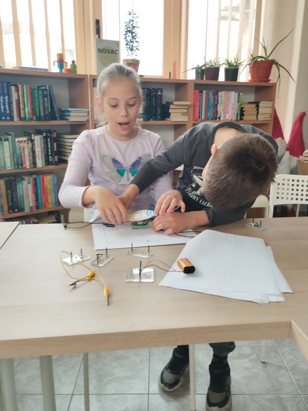 U praktičnom dijelu radionice djeca su se upoznala s osnovnim dijelovima strujnog kruga. Kroz rad u grupama samostalno su sastavljali serijski strujni krug koristeći baterije, trošila, vodiče, LED lampe, otpornike i elektromotor. Aktivnost je razvijala logičko razmišljanje, finu motoriku i razumijevanje osnovnih tehničkih principa.